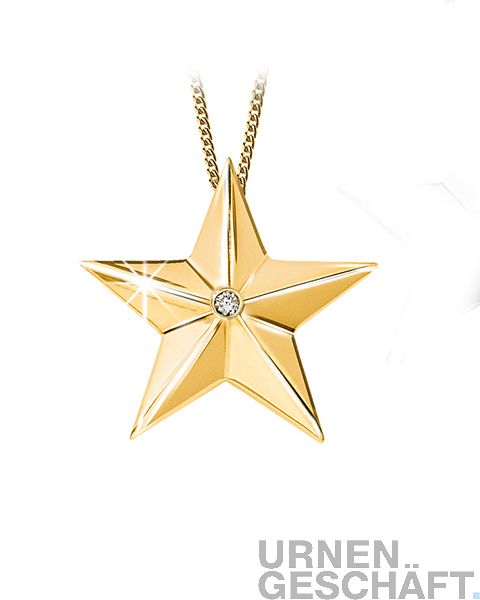 Asche Anhänger 'Stern' 14-Karat-Gold mit Diamanten