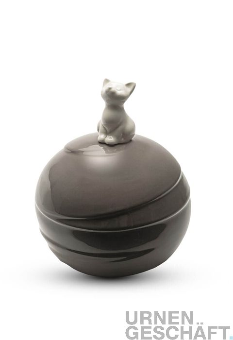 Tierurne aus Prozellan 'Kugel mit Katze' grau-weiβ